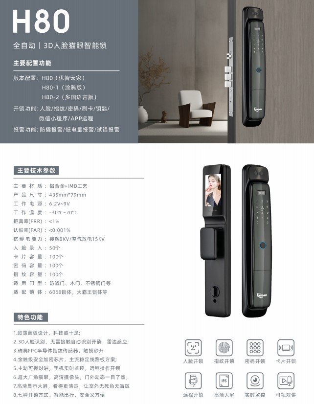 H80 全自动|3D人脸猫眼智能锁