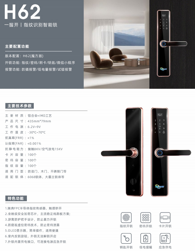 H62 一握开|指纹识别智能锁